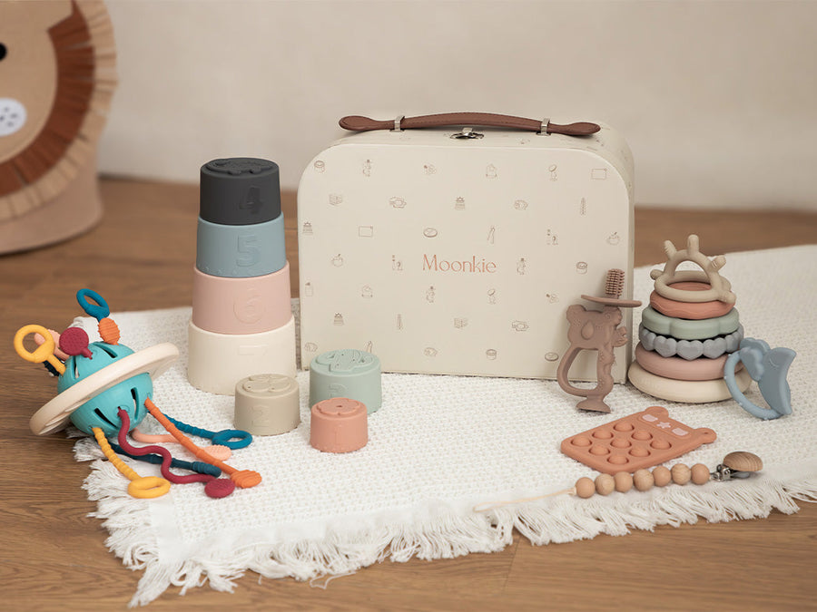 Make your baby's meals more enjoyable! This 14-piece baby feeding set contains 1 x baby suction plate, 1x suction plate lid, 1 x suction bowl, 1 x fork, 1 x spoon, 1 x sippy cup, 1 x sippy cup straw, 1 sippy cup led, 1 x baby bib with catcher,1 x First stage toddler fork, 1 x First stage toddler spoon, 1 x teether, 1 x finger toothbrush and 1 x toothbrush cover.